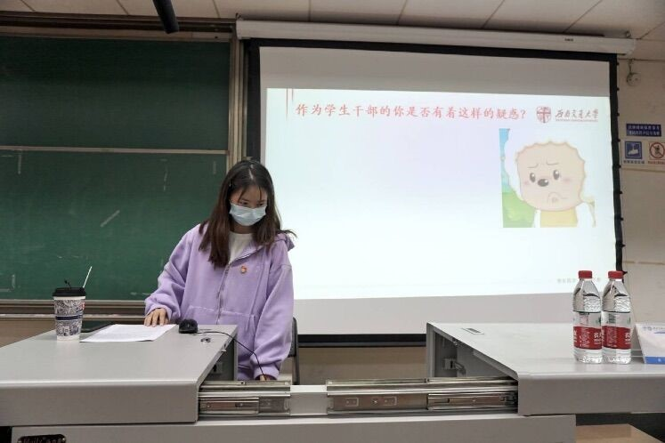 本科2021级辅导员、计财处助理团指导老师莫代玉主讲,培训主题为“报账流程及二课堂开课讲解”,旨在向团干部们介绍活动开展和报账的注意事项、二课堂开课具体流程以及如何成为一名优秀学生干部。