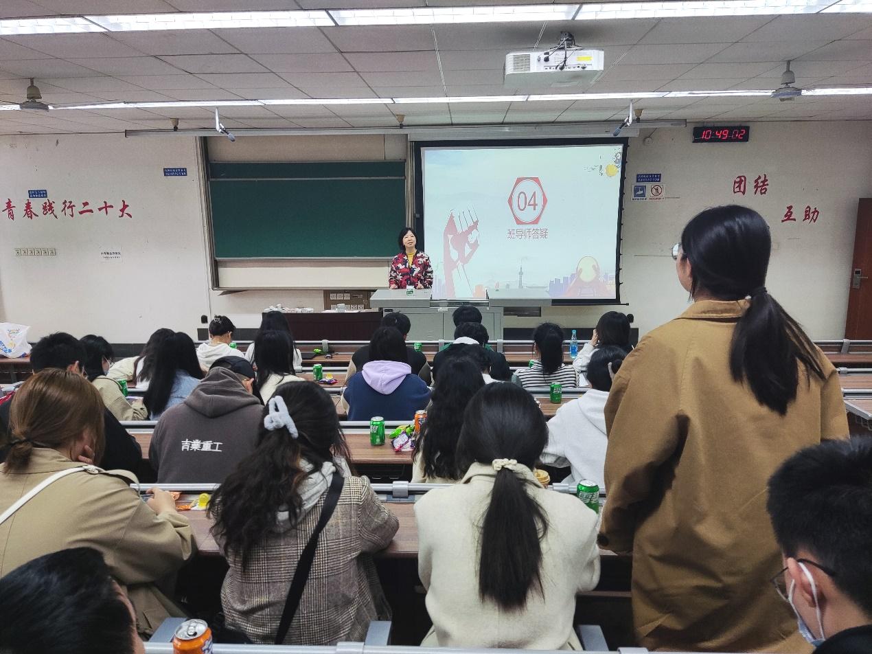 本科2021级经济1班于2023年3月16日上午在九里校区J4319开展了以“青春践行二十大”为主题的班会。参加此次班会的嘉宾有班导师郑亚非,辅导员莫代玉。