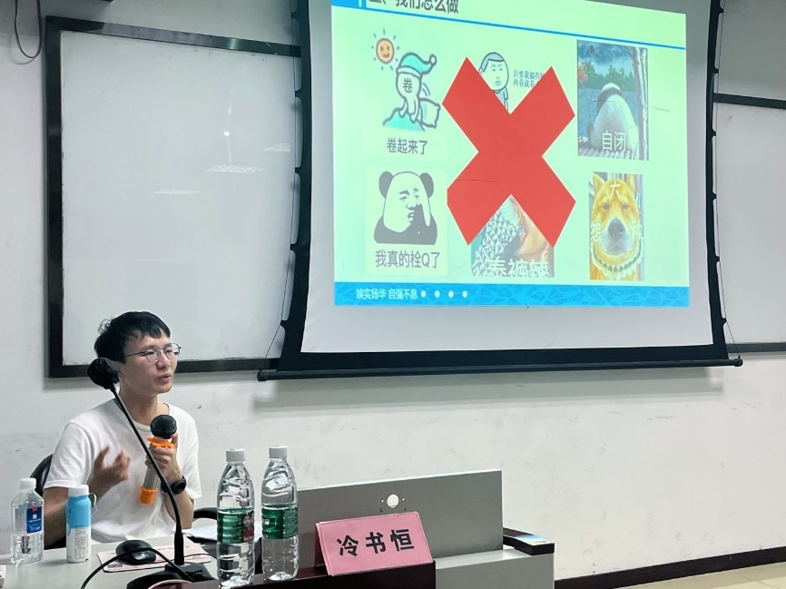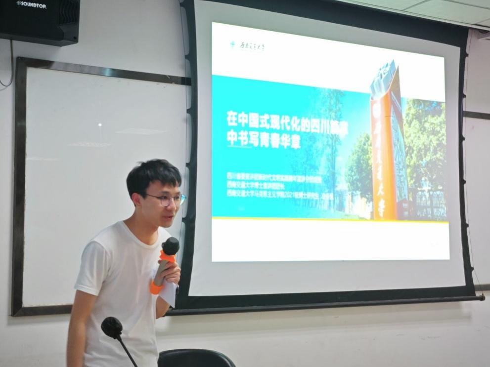 博士宣讲团团长、马克思主义学院2021级博士研究生冷书恒主讲,培训主题为“在中国式现代化的四川篇章中书写青春华章”,详细介绍了四川在中国式现代化建设中做出的贡献与成就,有力引导了同学们思考新时代青年在此进程中应该如何贡献自己的青春力量。