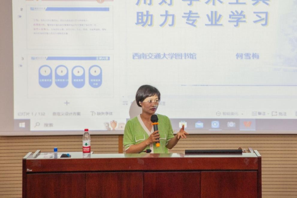 图书馆何雪梅老师主讲,旨在向同学们分享有关于资源获取的经验、提供信息检索技巧,并指导大家准确高效地查找相关文献,培养提升同学们的学习、科研以及创新能力。