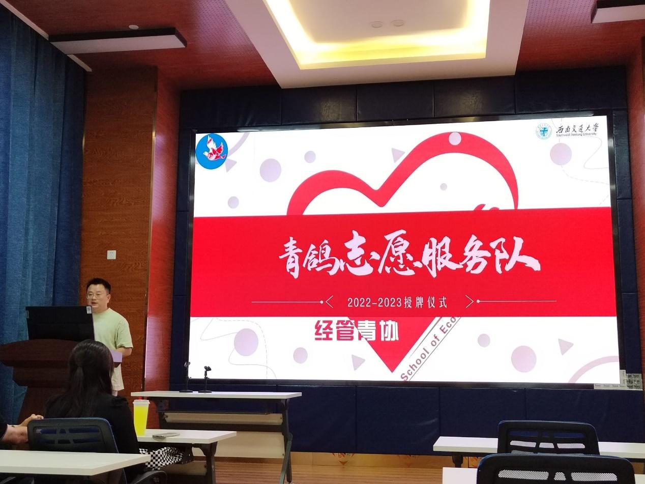 6月9日,经管青协在0218成功举办青鸽志愿服务队授牌活动仪式,授牌仪式很荣幸邀请到学院党委杨宏毅副书记参加并为青鸽志愿服务队授牌。经管青协指导老师陈建奇介绍,青鸽志愿服务队是一支志愿通过助老、助农、扶弱、扶幼等服务活动,为社会公益赋能,助力乡村振兴的公益队伍,奉行“奉献、友爱、互助、进步”的志愿精神,坚持以“青衿之志,履践致远”为口号,弘扬“我奉献、我快乐、我进步”的志愿理念,致力于在实践中锻造一批团队化、专业化、社会化的志愿服务队伍,并孵化落地优秀志愿服务项目,促进志愿服务活动项目化提质增效。