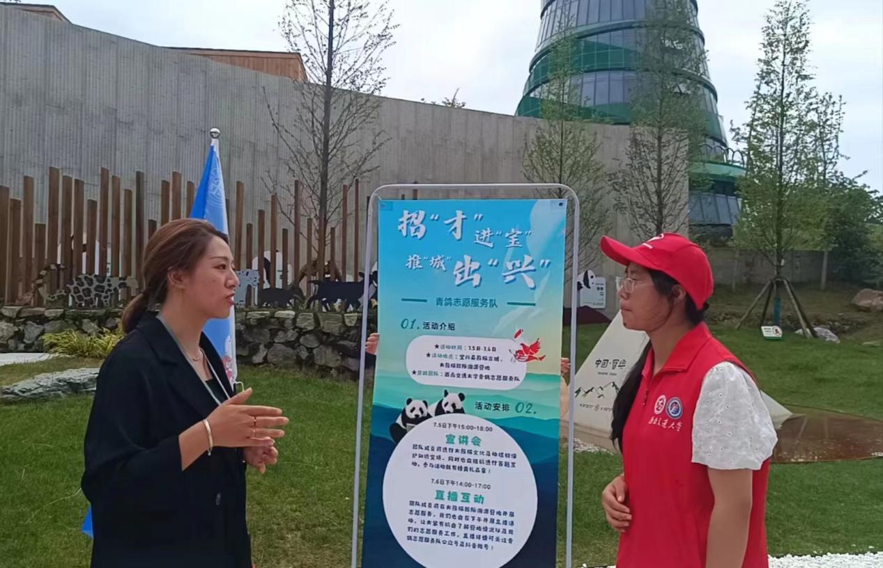 活动最后一天,宝兴县大熊猫国际溯源营地景区负责人梁峪绫接受了实践团队的专访。在采访过程中,队员们聆听梁峪绫讲述大熊猫科学发现的历史故事,了解了大熊猫作为和平使者的文化背景。谈及对营地的展望,梁峪绫表示营地以自然教育为主,希望营地在不断发展进步中,能够给更多家庭提供亲近自然、掌握动植物保护知识的平台,为宝兴县的未来发展助力。最后,梁峪绫表示此次社会实践活动对景区宣传及文化弘扬具有推动作用,很有意义。
