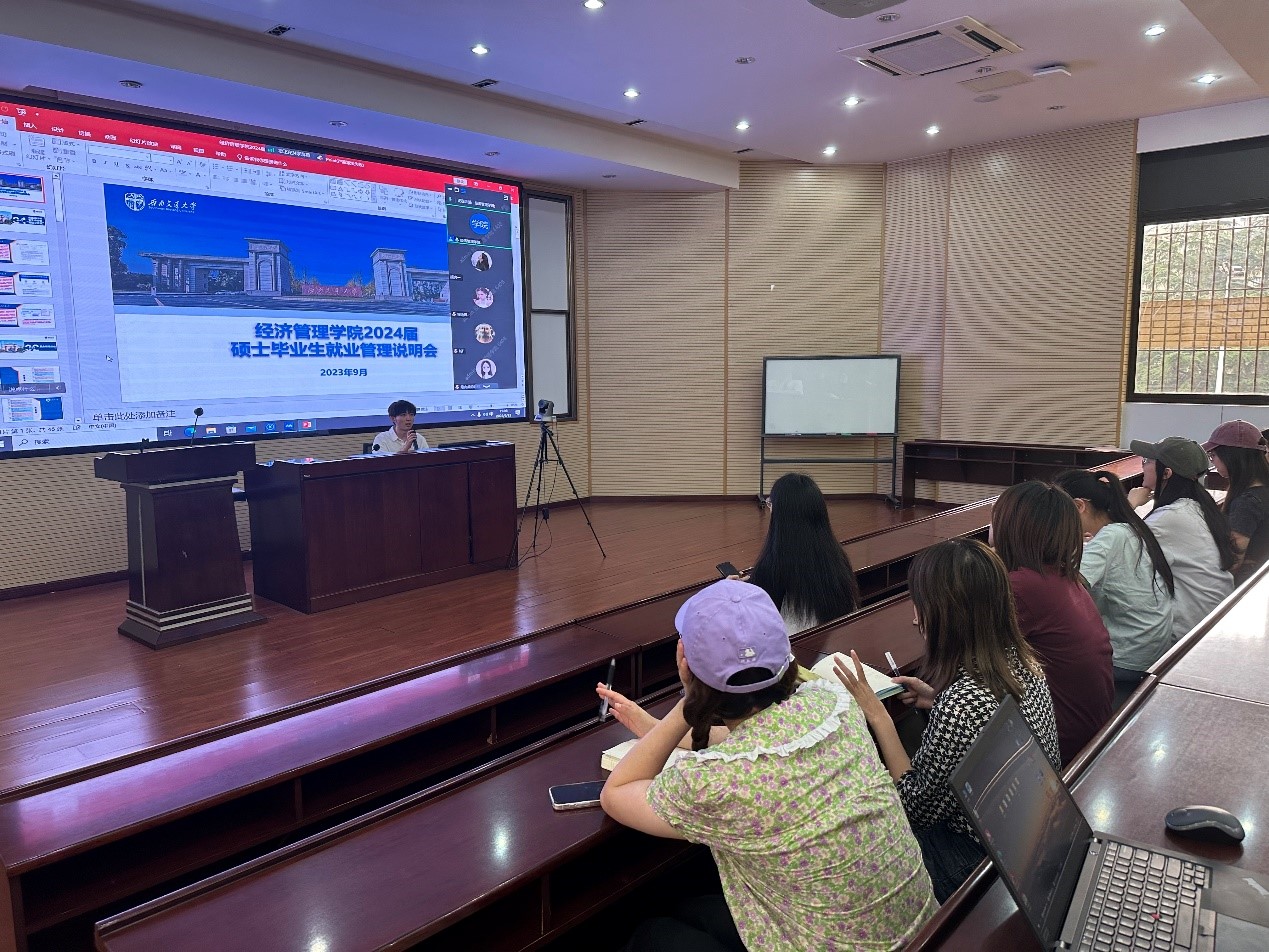 为进一步做好毕业生就业指导与服务,引导毕业生转变就业观念,促进积极就业,帮助同学们更好地理解使用全国大学生毕业去向登记系统(后简称“全国系统”),9月13日下午3点,在J0202教室召开了2024届硕士毕业生就业工作会议。会议由负责就业的研究生辅导员贺小轩主讲,学工组副组长、团委书记贾佳及100余名2024届硕士毕业生共同参会。