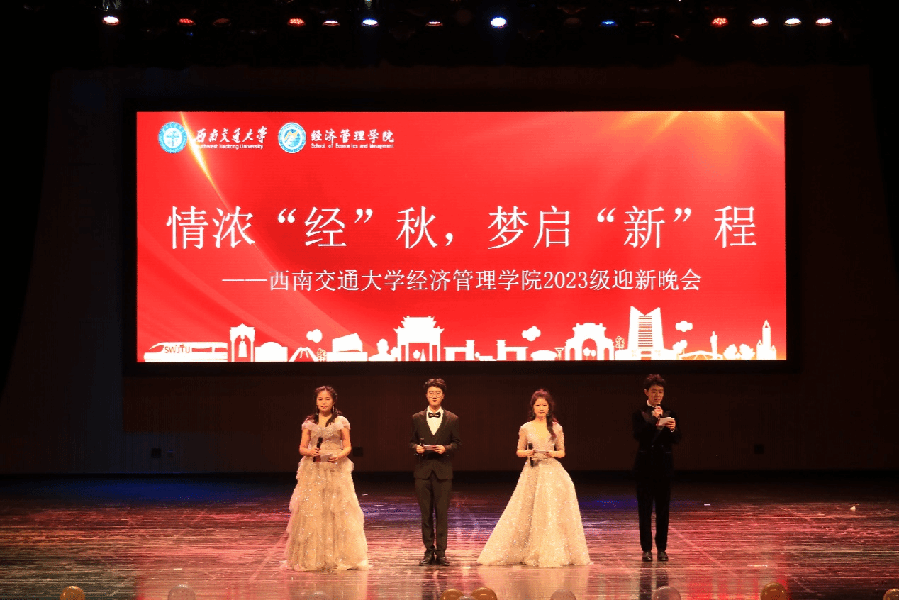 2023级迎新晚会顺利举行。本次晚会以“情浓‘经’秋 ,梦起‘新’程”为主题,表演班级用动感的歌曲、舞蹈和独特的故事演绎让同学们挥手告别过去的童真年代,勇敢面对未来的光明灿烂;通过舞台剧、大合唱等展现了青春的勃发和青年的力量。各班青春飞扬,为全场观众带来了一场视听盛宴。