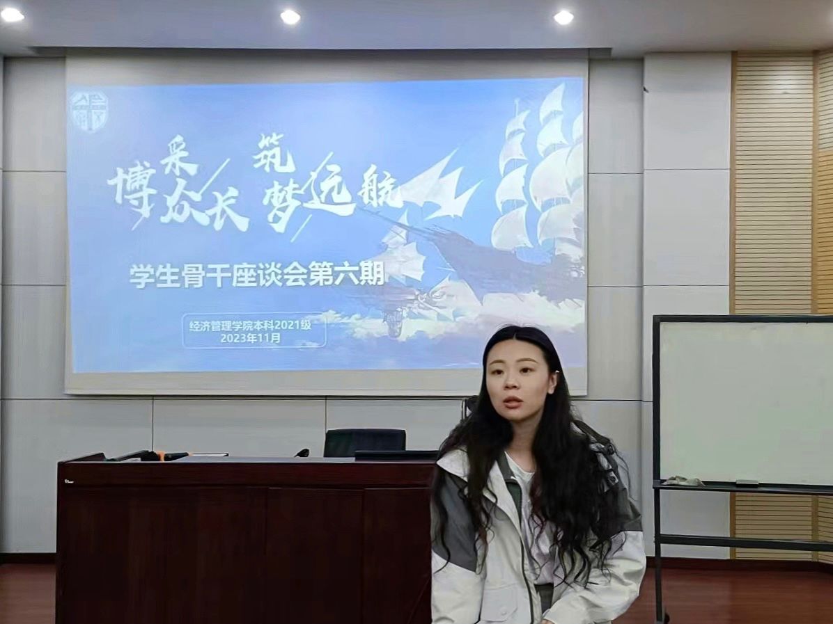 本科2021级于J0215教室开展“博采众长,筑梦远航”第6期学生骨干座谈会。本科2021级辅导员张先凌、钟文婷出席,全体班委参会。