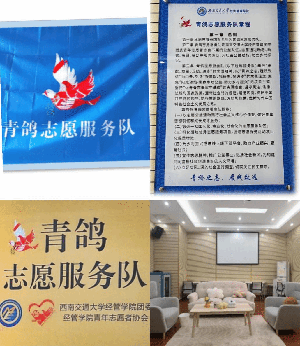 青年志愿者协会以主席团为核心,下设六个部门,从文稿撰写、媒体运营等多方面提升我院青年志愿者的综合能力。2023年协会设立“青鸽志愿服务队”,以“青鸽”为依托,锻造一批团队化、专业化、社会化的志愿服务队伍,不断总结凝练,深挖实践活动价值,孵化落地优秀社会实践项目,提高学院广大青年参与社会实践的热情与活力。