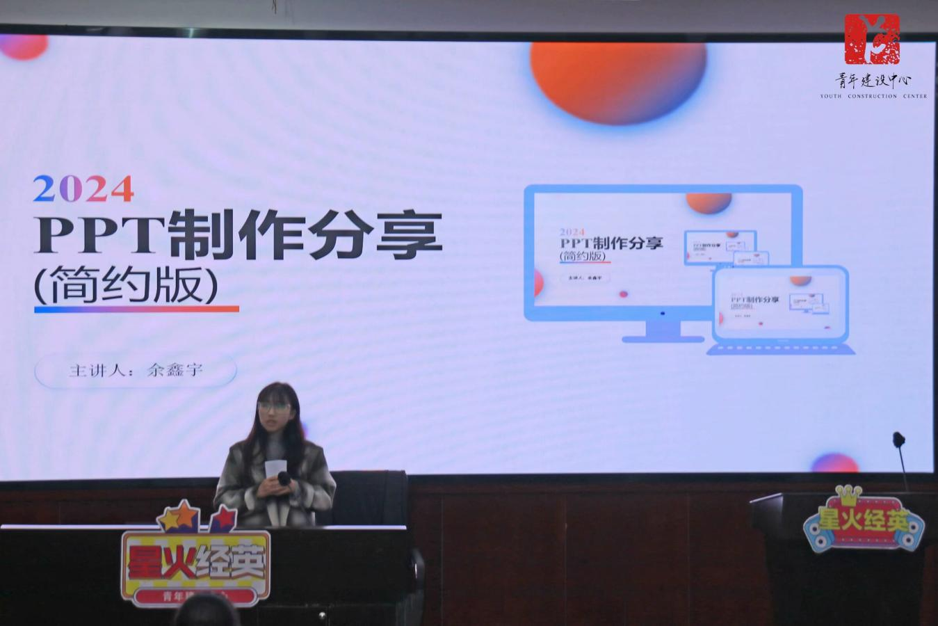 PPT协会会长余鑫宇主讲,主题为“PPT制作技巧与美化实操”,旨在帮助团干部们提升PPT制作能力,更好地将制作技巧运用在实践之中。