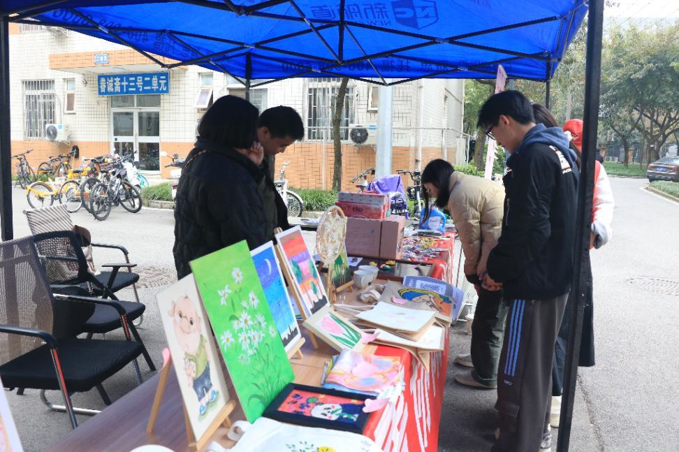 青年志愿者协会紧密协作,进行了精心的策划和准备。阳光家园负责收集由“大朋友们”亲手制作的各种手工艺品,包括精美的编织饰品、卡通冰箱贴及小夹子、独具匠心的手工绘画以及创意十足的摆件等。志愿者们则是提前规划了场地布局,设计并制作了宣传海报和展示牌,以便更好地进行宣传与推广。