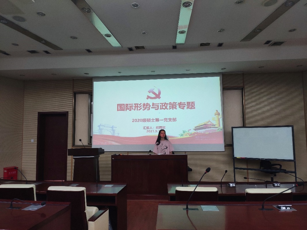 硕士2020级第一党支部在九里校区0212教室,召开了国内外形势与政策专题学习组织生活会。本次会议由支部内的郑雨欣同志进行主讲。支部内现有正式党员11名,预备党员3名,积极分子5名,此次会议共有16人参与,3人请假。