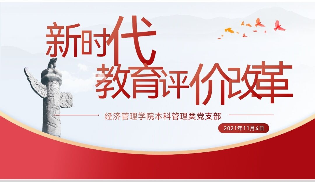 2021年11月4日下午,本科管理类党支部于0218学术报告厅开展了主题为“新时代教育评价改革”的主题学习活动。本次活动于线上和线下同时进行,支部全体党员和入党积极分子参与此次学习活动。