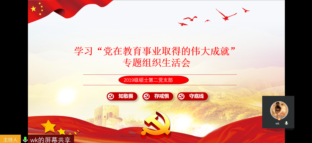 硕士2019级第二党支部通过腾讯会议网络平台开展“学习党在教育事业取得的伟大成就”专题组织生活会。活动由党支部书记王可主持,党支部全体成员与会。