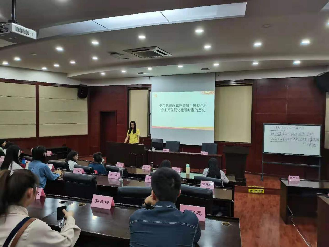 硕士2020级第四党支部在0228教室顺利召开了以“学习党在改革开放和中国特色社会主义现代化建设时期的历史”为主题的专题组织生活会。本次会议主要分为三个部分,一是由李丰翼和张文仙同志带领学习阅读党在改革开放和中国特色社会主义现代化建设时期的历史,学习相关事件以及重大决策;二是同学们学习完后发表自身感悟;三是由支部书记进行总结发言。此次主题教育活动由李丰翼、张文仙同志共同主持,党支部所有党员均出席并认真参与了此次党支部会议活动。