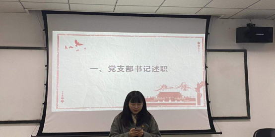接下来是党支部书记孔君进行工作述职。从研究生入学以来,首先,在支部书记孔君的组织下,支部同志较快地补齐了所有党员所缺材料并及时移交了档案馆,完成了所有党员的党组织关系转接,另外还完成了支部内一名预备党员的转正工作;其次,支部书记带领支部内党员认真践行了“三会一课”制度,定期开展主题党日活动和思想政治理论学习工作,定期开展了支部内委员之间,支部委员与党员,党员与党员之间的谈心谈话。