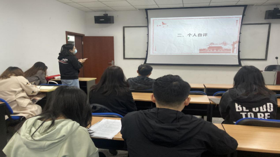 接下来会议进行到党员自评与党员互评,各位党员对自己上学期以来的表现从不同方面进行了自我总结,查找自身不足,并为自己提出了进步目标;此外,在党员互评阶段,党员之间也进行了诚挚的互提建议,互指不足,让党员之间相互学习的氛围更加浓厚。