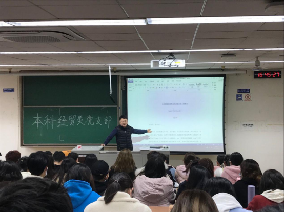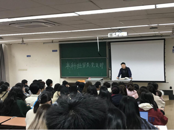 2021年3月4日,本科经贸类党支部在九里校区4223教室开展支部大会,会议由支部书记陈建奇同志主持,全体党员、预备党员和入党积极分子参与会议。本次支部大会主题是:学习《习近平在全国脱贫攻坚总结表彰大会上的讲话》。