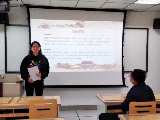 首先,支部书记曲芯雨同志向叶勇老师及全体党员同志汇报了党支部2020年的工作情况。分别从党支部基本情况介绍、党支部日常建设情况、党支部工作不足之处及反思三方面进行了阐述。2020年支部新发展3名入党积极分子,体现出支部号召力强,吸引了优秀青年学生积极向党组织靠拢。截止2021年3月,支部已有11名正式党员,5名积极分子,支部成员共计16人。支部的日常建设主要体现在以下四方面:一是注重理论学习,筑牢思想根基;二是注重理论与实践相结合,发挥榜样带头作用;三是注重党员发展,严把“质量关”;四是注重纪律教育,规范流程。支部工作的不足之处体现在党建工作基本为完成上级党组织下达的规定动作,自选动作不多,支部活动吸引力比较低;其次是党建工作与本专业自身特点联系还不够紧密;再者就是在党日活动以外,党支部日常的督促和学习力度不够。然后曲芯雨同志着重向大家汇报了党支部接下来的改进方向,一是创新基层党建学习模式,在坚持原有的学习方式的基础上,创新学习方式,扩展学习内容;二是加快党团班一体化建设,促进党团班深度融合,增加专业知识的分享与探讨,从时政热点中提炼相关的专业问题;三是建立学习交流小组,让党建工作融入日常的一点一滴当中,建立学习交流小组,相互督促,做到月月学,周周学,日日学。