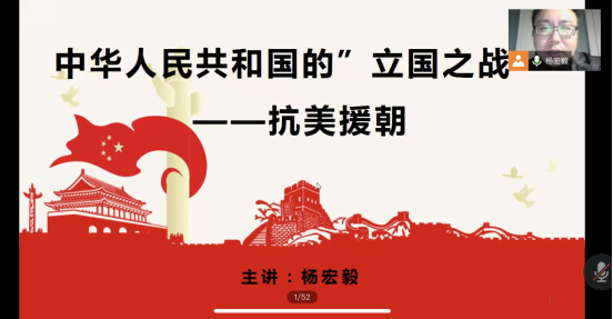 杨老师着重提到,对于当时的新中国来说,抗美援朝的决策在中央受到了很多人反对,但在伟大领袖毛主席的带领下,最终还是决定援助朝鲜,也最终奇迹般地获得了影响深远的伟大胜利。今天,抗美援朝战争的硝烟早已散去,但这场战争赢得的和平环境、巩固的安全基石、激发的民族自信、奠定的大国地位,都在历史大潮中放射出愈加夺目的光辉。