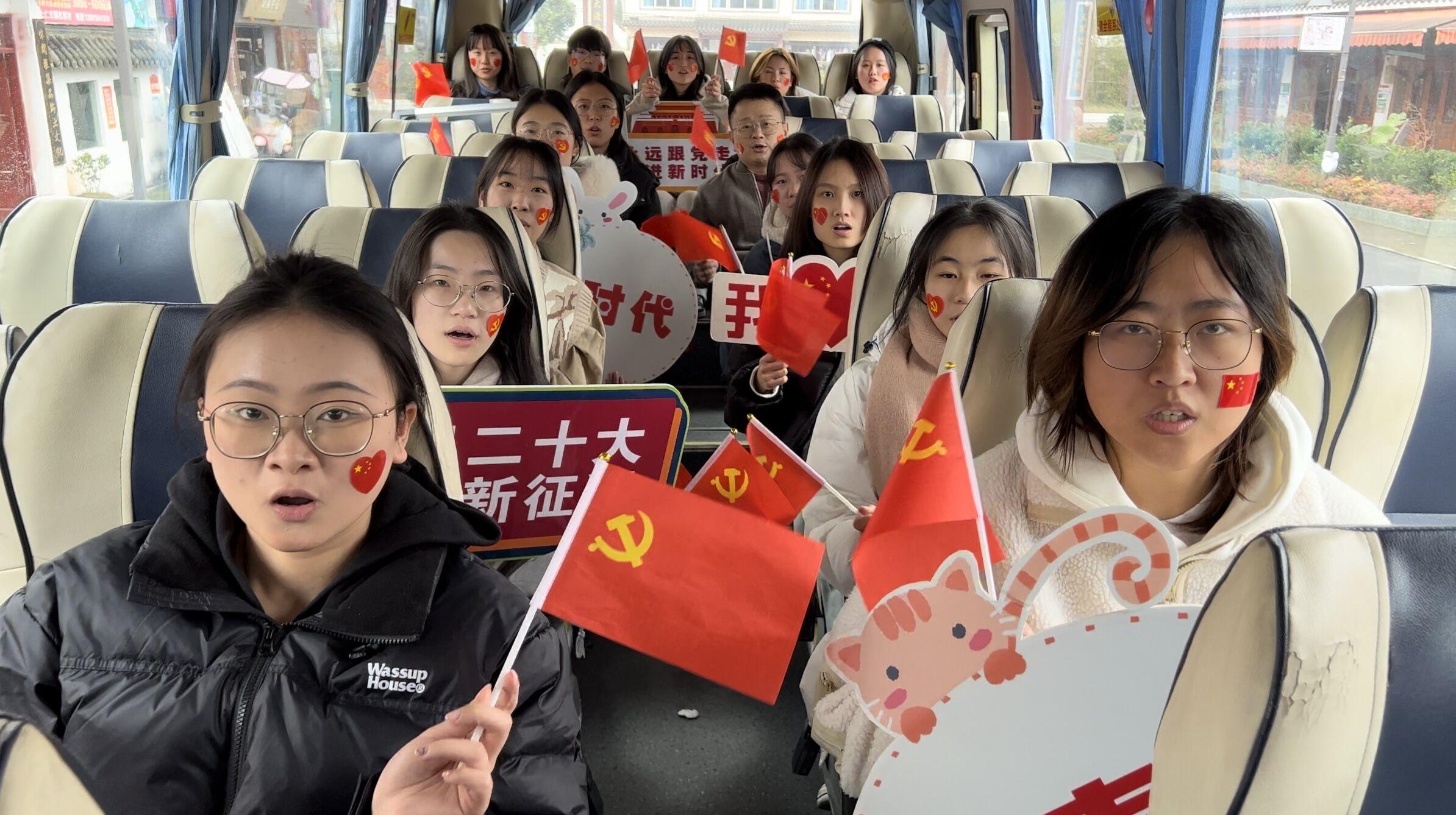 早上8点,全体党员佩戴党徽,怀着对革命烈士的敬意启程。“岁月易流转,党魂永存心”,行驶途中,大家重温红色歌曲,传唱经典旋律,用嘹亮歌声彰显着青年党员爱党爱国的热情。一首《没有共产党就没有新中国》将气氛推向高潮。挥舞的国旗、微笑的脸庞、振动的音符、流淌的红歌,让党支部成员从内心深处感受到革命的力量和祖国的强盛,激发起烽火岁月的澎湃激情,坚定了只有中国共产党才能带领中华民族走向伟大复兴的信心和决心。