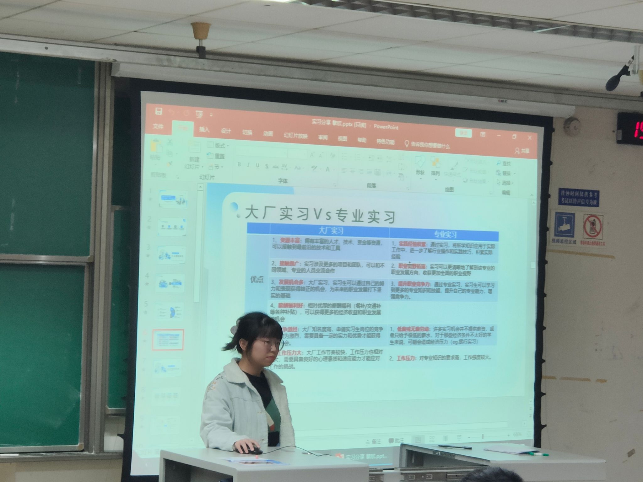硕士2023级第二党支部的黎欣同志分享了她在智联招聘南昌分公司的实习经历及收获体会。她从比较大厂实习和专业实习的角度为大家介绍了什么是好实习以及实习的目的,接着讲述了实习前的准备和找实习的方法。她强调了简历的重要性,除了要简明扼要和抓住重点外,简历更要突出优势,引导面试官围绕优势发问,表明自身与岗位匹配的能力。黎欣同志的分享激励支部成员们通过实习不断提升自身综合素质,以适应将来的工作环境,提升就业竞争力。